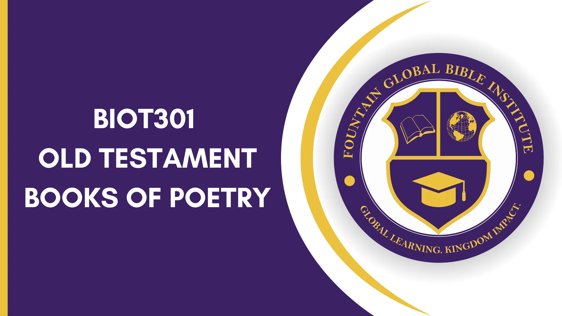 BIOT301 OLD TESTAMENT BOOKS OF POETRY